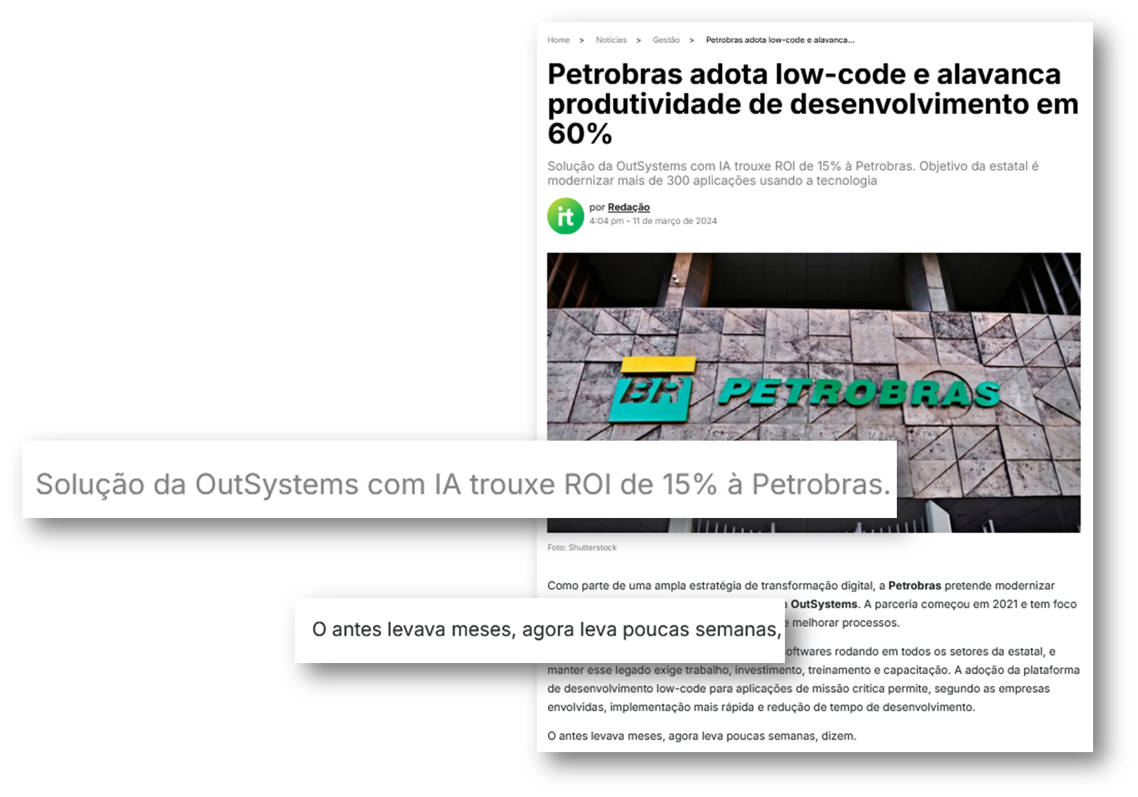 O projeto da Petrobras com low-code trouxe resultados expressivos em produtividade, retorno financeiro, velocidade e qualidade.
